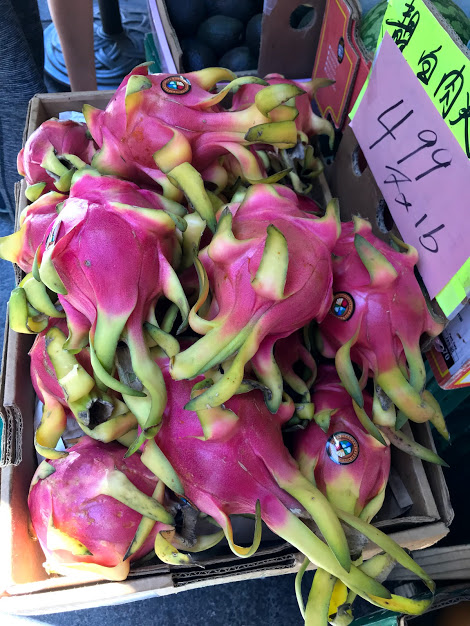 …..we also visited some Asian markets. We saw many different fruits and vegetables with which we were unfamiliar. The proprietors spoke Chinese and the signage was also in Chinese. I was particularly struck by this beautiful fruit…..