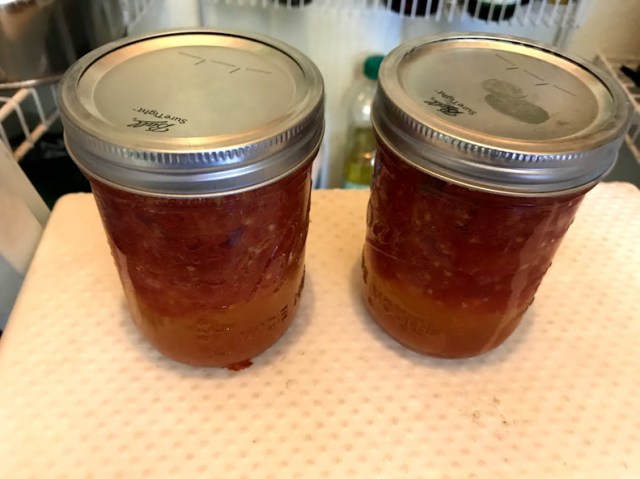 I mentioned last week that I am getting an abundant crop of tomatoes. So many, in fact, that I’m having trouble keeping up. Finally yesterday I decided that I would can a few pints of tomatoes, something I haven’t done for a number of years. Bec helped me peel the tomatoes, and I only got a couple of pints, but it is better than throwing them away…..