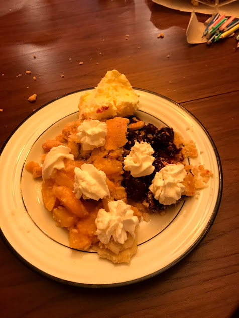 Dagny couldn’t make up her mind, so she chose a piece of peach pie and a piece of cherry pie…..