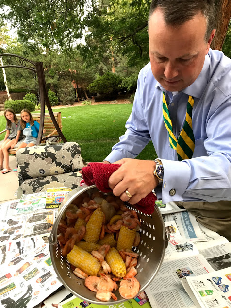 The shrimp boil looks amazing and the grands are adorable. The pic of Dave in his shirt and tie tells it in no uncertain terms. The sabbatical is over. 😢