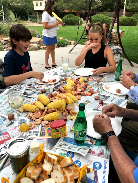 I have been hankering for a seafood boil. Tuesday night, when I mentioned it to Alastair, his eyes lit up like a Christmas tree. I’m in, he stated emphatically. So last night we filled our big turkey fryer with boiling water, and Bec prepared a shrimp boil for a gang of nine. It was delicious!…..
