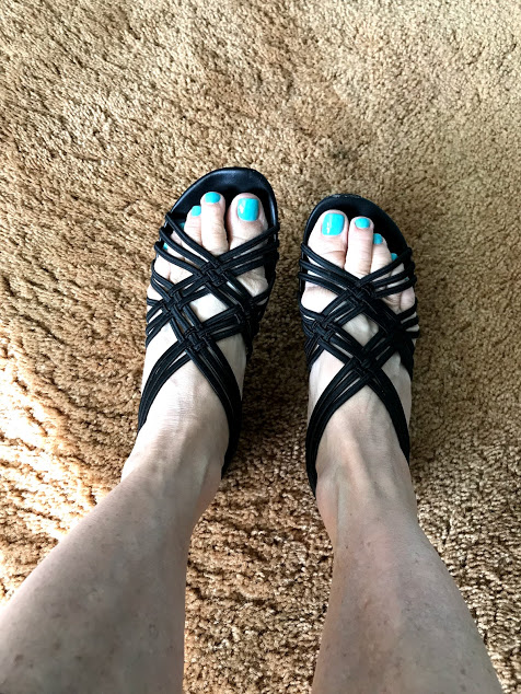 I always think my granddaughters’ feet look so awesome when they have their toenails painted a bright green or blue. So earlier this week when I got my pedicure, I picked out what I thought was a pretty shade of blue. What the heck. I’ll take a walk on the wild side. Unfortunately, I can’t get past the fact that my feet don’t really look striking; rather, they look more like I have a toenail fungus……