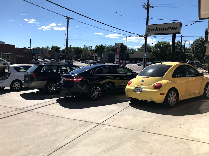 So, two days later, here was my newly-fixed car, awaiting my arrival with a checkbook. Doesn’t it look cute sitting with the grown-ups?….