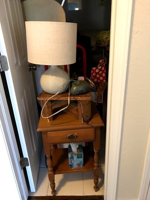 Our upstairs bathroom currently holds just about everything we previously had in our closets, and more, at least until the end of today…..