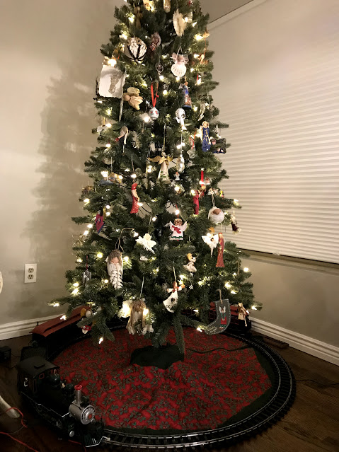 On a more pleasant note, I got my Christmas trees decorated this weekend, and Bill put out his train, something he hasn’t done for over five years. Cole will have a lot to say about this train…..