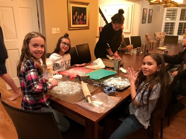 Maggie Faith, Kaiya, and Mylee get ready to hunker down and make themselves some cookies.