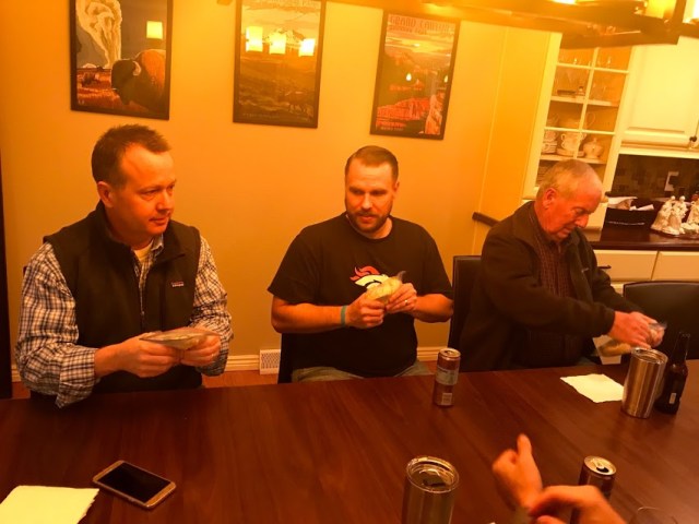 Dave, Court, and Bill started the ball rolling by softening up the dough for the kids.