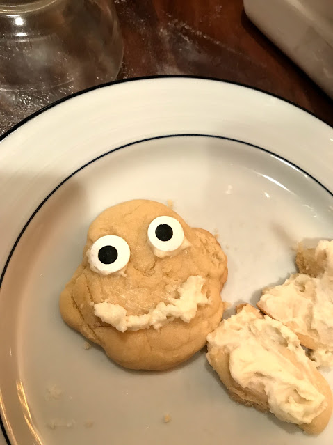 Addie and Allen are carefully working on making cookies shaped like biology experiments. Go figure.