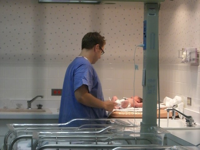 Court, giving his firstborn her first bath. Mostly, he’s staring at her in wonder.
