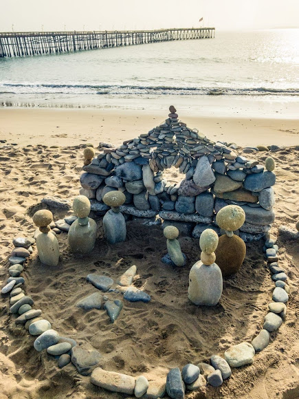 But perhaps my favorite holiday tribute was a photo that I saw on Facebook, featuring the Holy Family created by stones on the beach. Someone went to a lot of work, and knows the meaning of the season.