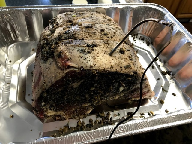 Believe me, this family has not forgotten the meaning of Christmas. Still, yesterday was important for another reason. December 23 is always the day that Bill and I spend with Court and his family. I make a big dinner, and we open gifts. For the past five years or so, I have prepared racks of lamb for this meal; however, this year we enjoyed a prime rib…..