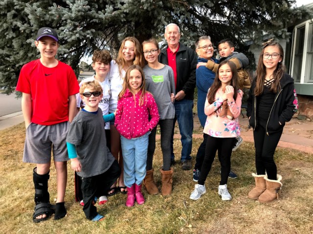Here is a photo of Bill and all of our grands as we gathered this past week…..