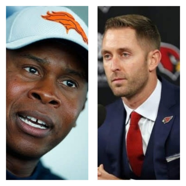 New Cardinals Defensive Coach Vance Joseph and New Cardinals Head Coach Kliff Kingsbury.