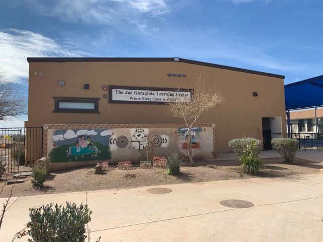 We were there for about an hour; it isn’t a large campus, and school was in session, so students and teachers were busy. It was an hour well-spent. As we were driving onto the Reservation, Kathleen gave me a little background about the school. It’s staffed by the Franciscan Sisters of Christian Charity and has many lay teachers, as well. And it has a lot of local financial and moral support. Kathleen said the teachers have the opportunity to see baseball and football games, because both the Diamondbacks and the Cardinals are big supporters. In fact, Larry Fitzgerald sends tickets to the school any time there’s a home Cardinals game. “And,” she said, “Joe Garagiola was a big supporter, too.” Sure enough, as soon as we drove onto the campus, I spotted the Joe Garagiola Learning Center. It houses the school’s library and computer center, and several classrooms. I asked how he got involved with the school, and Kathleen said she didn’t know for sure, but she suspected one of the sisters wrote him a letter and he became a supporter…..