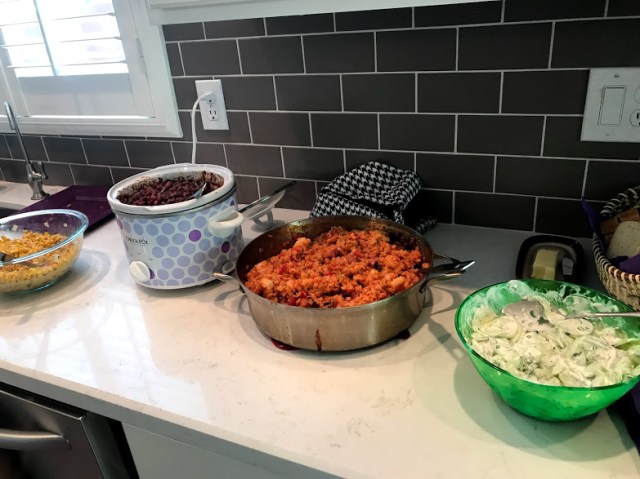 Every year, Bec’s son Erik uses his enviable culinary chops to make jambalaya and gumbo. Lots of jambalaya and gumbo. This year I contributed red beans and rice, and Bec and I made some appetizers and sides.