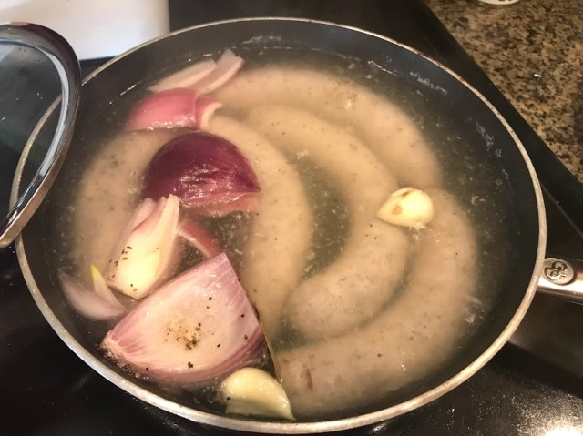 And then I stopped at the market to pick up my Polish sausage for Easter Sunday. Like last year, I will cook them in water flavored with onions and garlic and bay leaves and peppercorns and other good spices, and then finish them in my cast iron pan…..