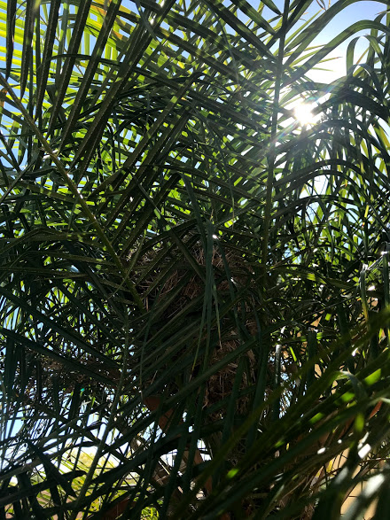 In years past, we have had mockingbirds build nests in the tree that was in our front yard — the tree that gave Bill fits because all it did was create detritus that required never-ending cleaning. That tree, I’m happy to report, was cut down in the fall. I’m not sure what the mockingbirds thought, but we got our bird fix anyway. We have watched Mr. and Mrs. Cactus Wren build a nest in our back-yard palm tree…..