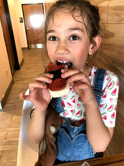 And speaking of food, the other afternoon I took Kaiya, Mylee, and Cole to a poke restaurant that I knew served Dole pineapple whips. It was hot, and it sounded refreshing and delicious. As we pulled up, Mylee cried out, “They have spam misubi!” What? She asked if she could get one, and I told her she could. You may already know what that is, but I certainly didn’t. Spam misubi is spam, marinated and lightly fried, on sushi rice and wrapped in seaweed. It’s a Hawaiian snack food. Though she was somewhat reluctant to share, I convinced her to give me a bite. It was, frankly, quite good. Kaiya could barely sit at the same table. “I don’t like canned meat,” she informed me…..
