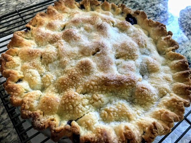 To celebrate said anniversary, Bill and I drove up yesterday afternoon to one of our favorite spots — Estes Park. We love to stay at the Deercrest Inn because the grounds are beautiful and the sound of the river is relaxing. Our whole family has lots of great memories of Estes Park. The first year when Jen and Bec and I were there, I had made a peach pie to enjoy after we grilled our steaks. While eating the pie next to the river, the proprietor came over and commented on how good it looked. I gave him a piece. He proclaimed it to be one of the best pies he’s ever eaten. So taking a pie with me has become a bit of a ritual. Given the time of year, this time it’s a blueberry pie…..