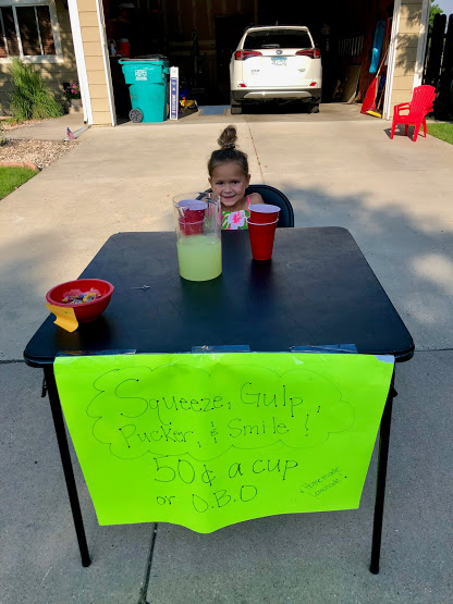 Every year my niece Maggie and her family visit Colorado around this time. They spend their time, of course, with my sister Jen. Last year, Lilly decided she wanted to set up a lemonade stand. As I recall, her sales were bleak, supplemented only by her Uncle Bill.