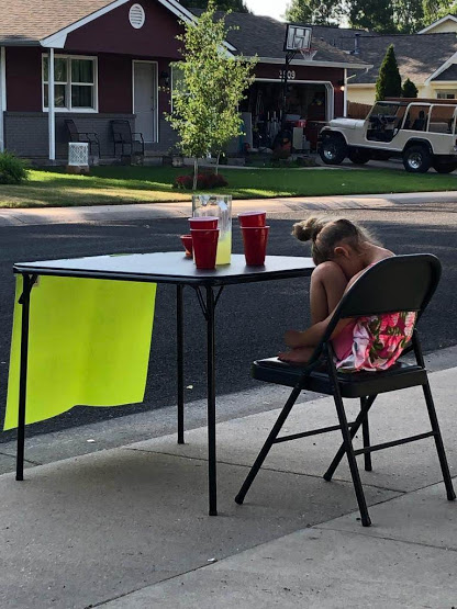 Austin’s sign did the trick. One of my neighbors walked over and bought a cup of lemonade, one Jolly Rancher (Austin’s entrepreneurial effort) and tipped a quarter. We called it a success and closed up shop.