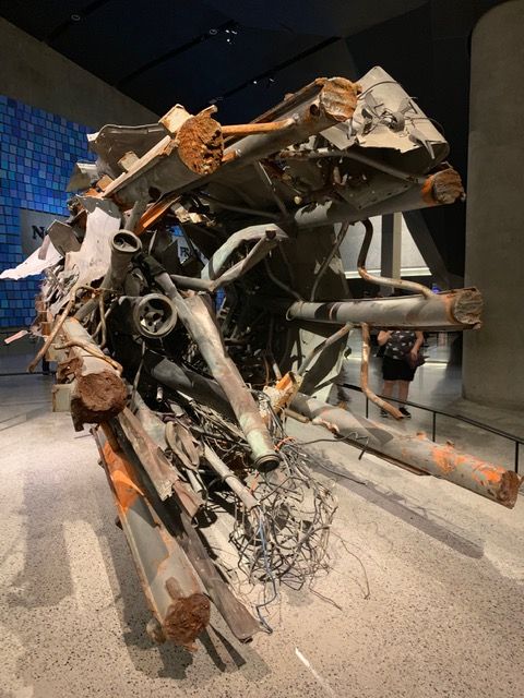 When we were planning the trip, we wondered how to choose what to do in our three-day visit. We decided that each of us would pick one “must-do” activity, and we would add in other things as they fit into our days. Mackenzie asked to see the Statue of Liberty and to visit the 911 Memorial and Museum. Since it was rainy on our first morning, a museum seemed like a good idea, so off we went. Our first job was to buy Metro cards. We talked to the kids about riding the subway and came up with a plan that would ensure that there would always be an adult on their side of the turnstile. Making sure we were heading in the right direction…Downtown…we were on our way.