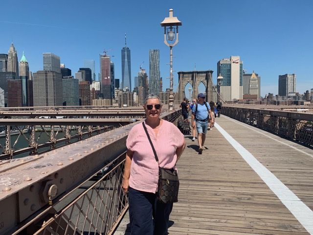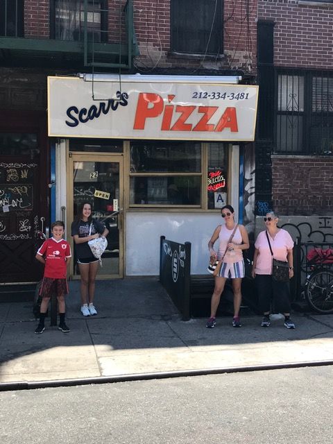 Mackenzie and Carter weren’t so sure about it, but after only a few minutes they got why it was so special. It’s only a mile, and the walk seemed easy to all of us, even though the walkway was crowded. The bridge itself is beautiful, of course, and so is the view of the skyline across the bridge. Before we knew it, we were on the other side, with lots of day left. Carter was hoping for an authentic New York slice, and that seemed like a good idea for our lunch. Google research pointed us to Scarro’s, so off we went. The subway dropped us off on the edge of Chinatown and we wound our way through the streets to find lunch. Scarro’s was everything it promised. We all loved our pizza in this tiny shop tucked in between Chinatown and Little Italy. And since we were so close to Little Italy, it seemed a no-brainer to walk there for what ended up being the best gelato ever. And, to my surprise, we were only an 8-minute walk from our apartment!…..