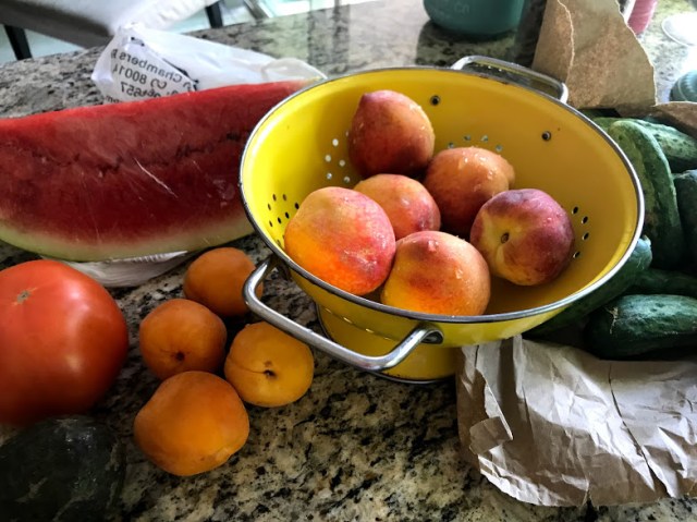 On a lighter note, I made my first run to the Farm Store that I like so much in Aurora. It’s a bit of a drive, but it always makes me happy to shop there. I purchased some fresh Colorado-grown peaches and apricots…..