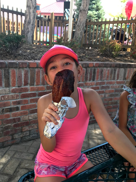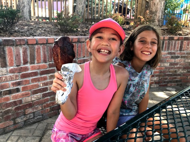 As soon as we walked in the entrance, Mylee — her stomach still full of sushi and edamame — spotted the booth selling turkey legs. I made her wait a couple of hours, but eventually she got her wish — a turkey leg!…..