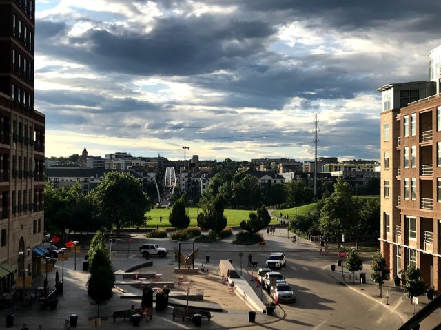 Generally when I disembark the light rail train at Union Station, I head east to the myriad of bars and restaurants near the baseball park. This time we headed west, where we hoofed across the railroad tracks via Millennial Bridge, and made our way to the Proto’s that is down past the Platte River…..