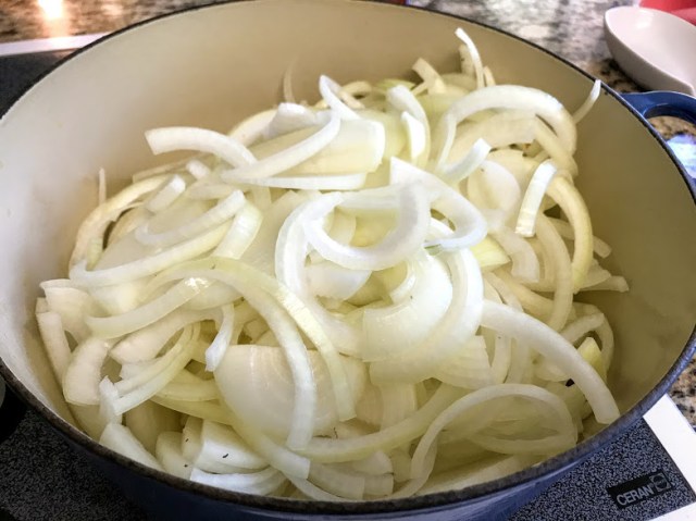 My son Court had surgery yesterday during which they removed some nodules near his vocal cords. Everything went fine, thank the Lord. But for 48 hours, he isn’t allowed to speak, even to whisper. And he is limited to soft foods for a few days. I texted him yesterday morning and asked if he would like me to make him a pot of soup. Yes please, he responded. I love French Onion Soup, but I’ll take anything if that’s too much work. Well, I’m his mommy, so I began cutting onions until my eyes burned from crying…..