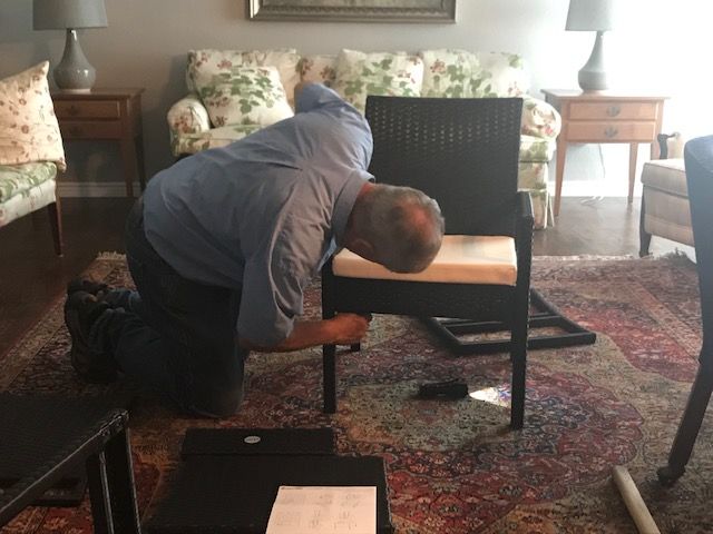 We needed a place to sit around the firepit, donchaknow. Because I am uncertain just how much we will use it, I decided instead of investing a ton of money on an outdoor seating area, we could start with some inexpensive chairs I got on sale. They came yesterday, and I have barely seen Bill since…..