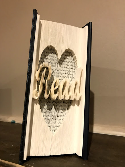My friend Denice makes these intricately handcrafted showpieces made from old books. Using a pattern, she cuts each page to make a picture. I have long admired her handiwork, and this week she surprised me with a gift that recognizes my love for reading. You can’t tell it from the photo, but the book she chose is one of my all-time favorites: Jane Eyre. Isn’t it lovely?…..
