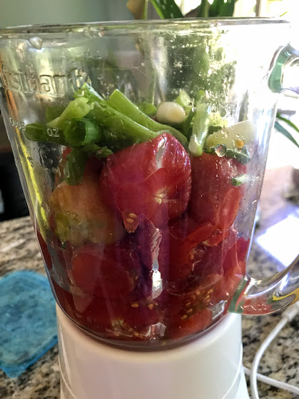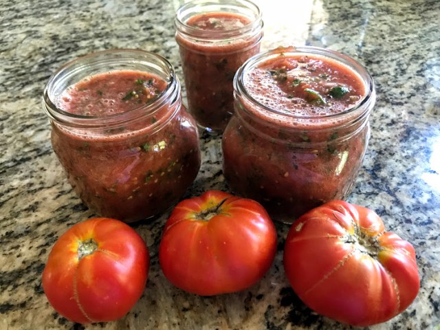 I’m beginning to have more tomatoes than I can handle from my two plants. I had planted two types: Big Boys and something called Fourth of July. The latter are considerably smaller than the former. Yesterday afternoon, I took the smaller tomatoes, skinned them, and made salsa. I considered canning, but there weren’t quite enough and I wasn’t willing to use my bigger tomatoes, at least not yet…..