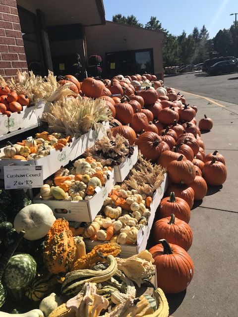 Despite my recent pumpkin spice rant, I have to admit that the sights and smells of autumn make me very happy. This was the sight that caught my eye yesterday at my neighborhood Whole Foods. Who knew that there were so many kinds of pumpkins and squashes?…..