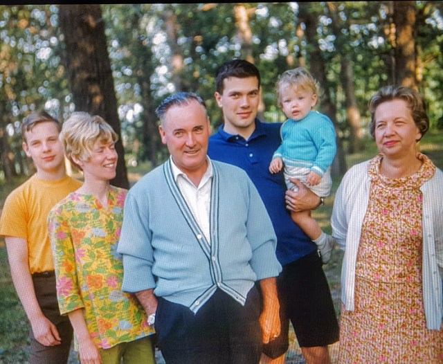 L-R: Bill’s brother Bruce, his sister Kathy, his father, his brother-in-law Charlie, and his mother. Neither Bill nor I can quite figure out the child; perhaps Charlie and Kathy’s firstborn, Missy.