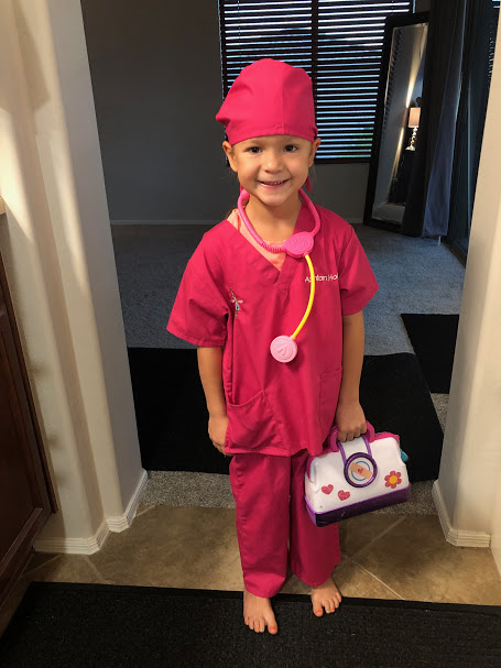 It was Community Helper day at Kindergarten. Lilly changed when we got to Oreganos because she said her nurses uniform was hot.