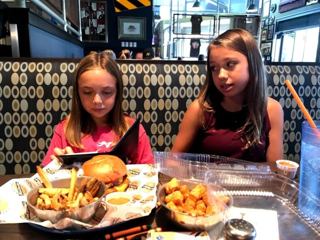 After perusing the menu, we all ordered our burgers and sides — homemade tater tots for Dagny, homemade potato chips for me, and French fries for Maggie and her papa. As we awaited the delivery of the food, we talked about all sorts of things, including Maggie’s upcoming trip to visit her Aunt Julie in Montana, school activities, and gossip about their sister Adelaide. This is a reminder to all that when you’re not there to defend yourself, you WILL get talked about by your siblings. It still happens to us, even though we are adults.