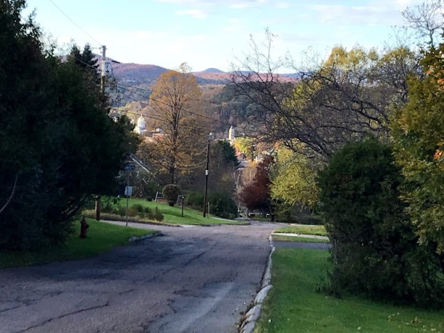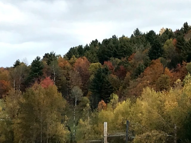 But seriously? Those maple trees in the autumn? Blazing reds and golds carpet the hills, making them look like they’re on fire. Our timing was perfect because yesterday, as we prepared to return to Denver, we learned that rain was expected later that evening in Vermont, almost certainly destined to knock the remaining leaves off the trees. It’s true that it’s better to be lucky than to be smart…..
