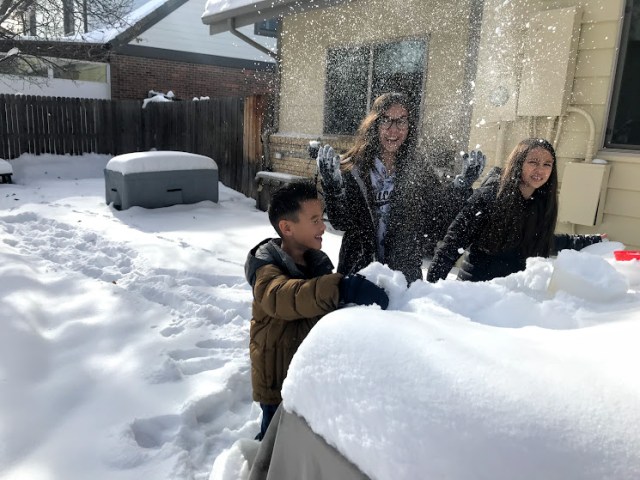 …..and make snow cream by mixing the snow with sweetened condensed milk and a little vanilla, and enjoying the fruits of labor…..