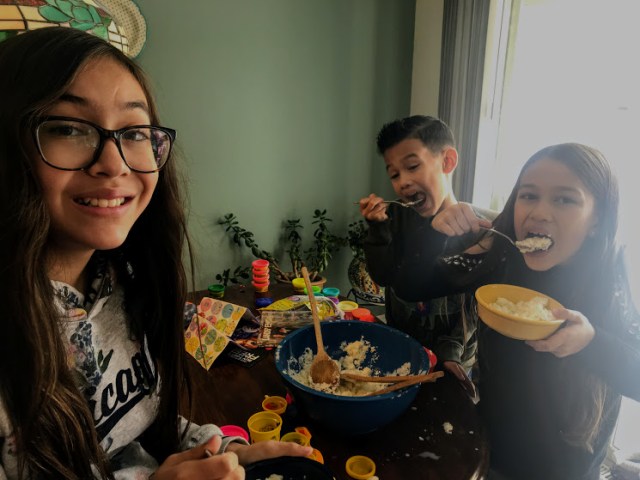 The kids then helped me set up my nativity scene, while we talked about the real meaning of Christmas…..