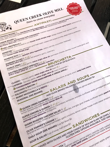 And speaking of flavors, Queen Creek Olive Mill produces a plethora of all-natural flavors, from smoky bacon to spicy three-chili. Since their oils are vegan, I’m not sure how they get the bacon flavor, but it’s there. Our guide suggested using it as a finishing oil for roasted veggies. Yum.