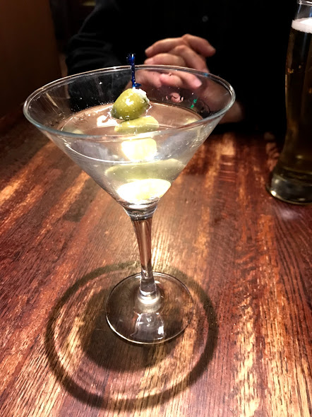 The martini was ice cold, and the bleu cheese olives added a nice twang. There’s something about a 2:30 p.m. martini that makes you feel naughty enough to feel good. And anything that can make a person feel upbeat in this environment can’t be bad.