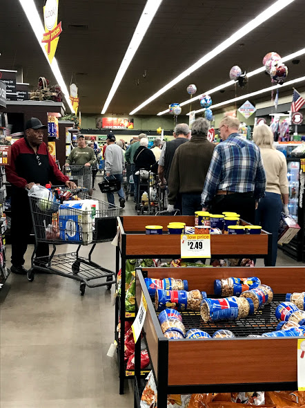 By the way, our local grocery store chain Basha’s was the first in our city to set aside an hour for seniors. That happened last Wednesday, from 5 to 6. Yes, friends, I’m talking about 5 to 6 in the a.m. I got there at 5:04, feeling smug because I was sure I would be the only one there that early. Au contraire, mon ami. There were no parking spots left, not a cart to be found, and there was no room to move in the store (though this didn’t matter that much because there was mostly nothing on the shelves)…..