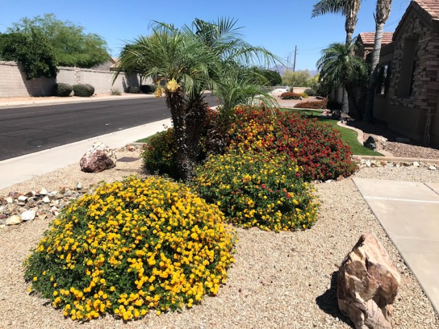 Whenever Bec comes to Colorado to visit in the summer, she always comments about how much she misses the colorful perennial and annual flowers present in the nondesert areas. But still, I think the desert flowers are so pretty, at least this time of the year. Here’s a glimpse of flowers in our yard and our neighborhood……