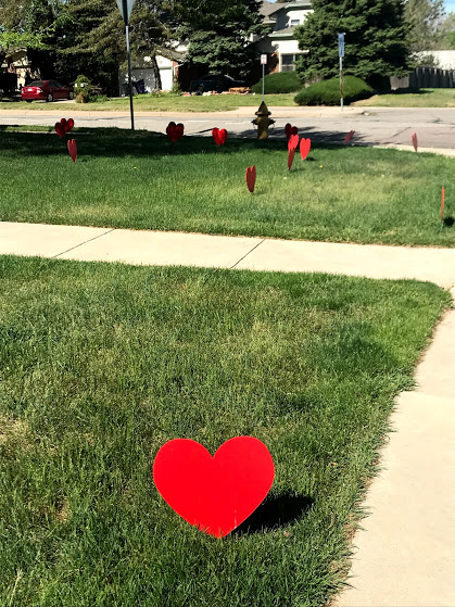 For no other reason than to lift people’s spirits, a wonderful neighbor had placed hearts all over their yard. It made my own heart happy.