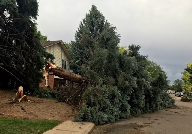 As you can see, (for once) I wasn’t exaggerating about the strength of the wind. The homeowners were standing in their driveway with shocked looks on their faces, undoubtedly grateful that the massive Blue Spruce tree had fallen in that direction instead of onto their house where it would surely would have gone through their ceiling and landed on their La-Z-Boys .