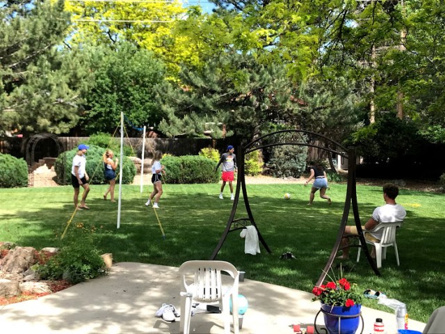 A week ago, Addie asked if she could set up the volleyball net in our back yard and invite a few friends over to play. I told her as long as she set it up and took it down, she was welcome to have a volleyball match. Tuesday night, she asked me if I minded if they did the same thing again. Since they had so much fun a week earlier, and since I really didn’t have to do a thing, I told her it was A-OK with us……