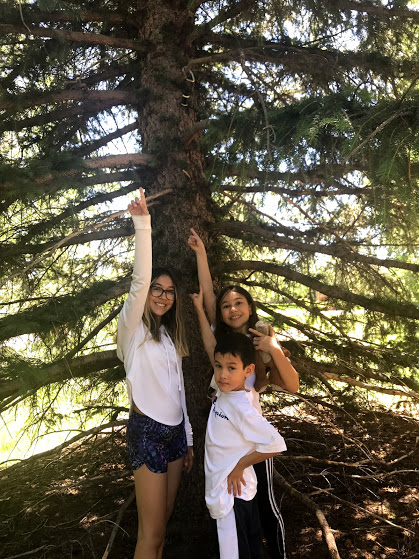 And while we were visiting the park, Kaiya showed us a secret hiding place that she and her friends had discovered one day when they rode their bikes to the park. It really is a very cool little spot that only kids (or very flexible adults) can get into. Cole squats in the entryway…..