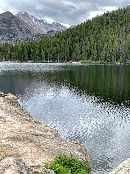 So we limited our visit to nature. Jen drove up on Sunday to spend the day with us. She and I drove into the park. We had to have a timed reservation in order to be allowed to enter. We drove to Bear Lake, anticipating that the limited numbers of people would result in only a few folks at this always-popular spot. We were wrong, as the parking lot was entirely full. We were thankful to have a handicapped placard (which Jen got when she had her knee surgery) because it allowed us to get past the park rangers. We had a lovely walk around Bear Lake, and reminisced about Mom, who loved that walk…..
